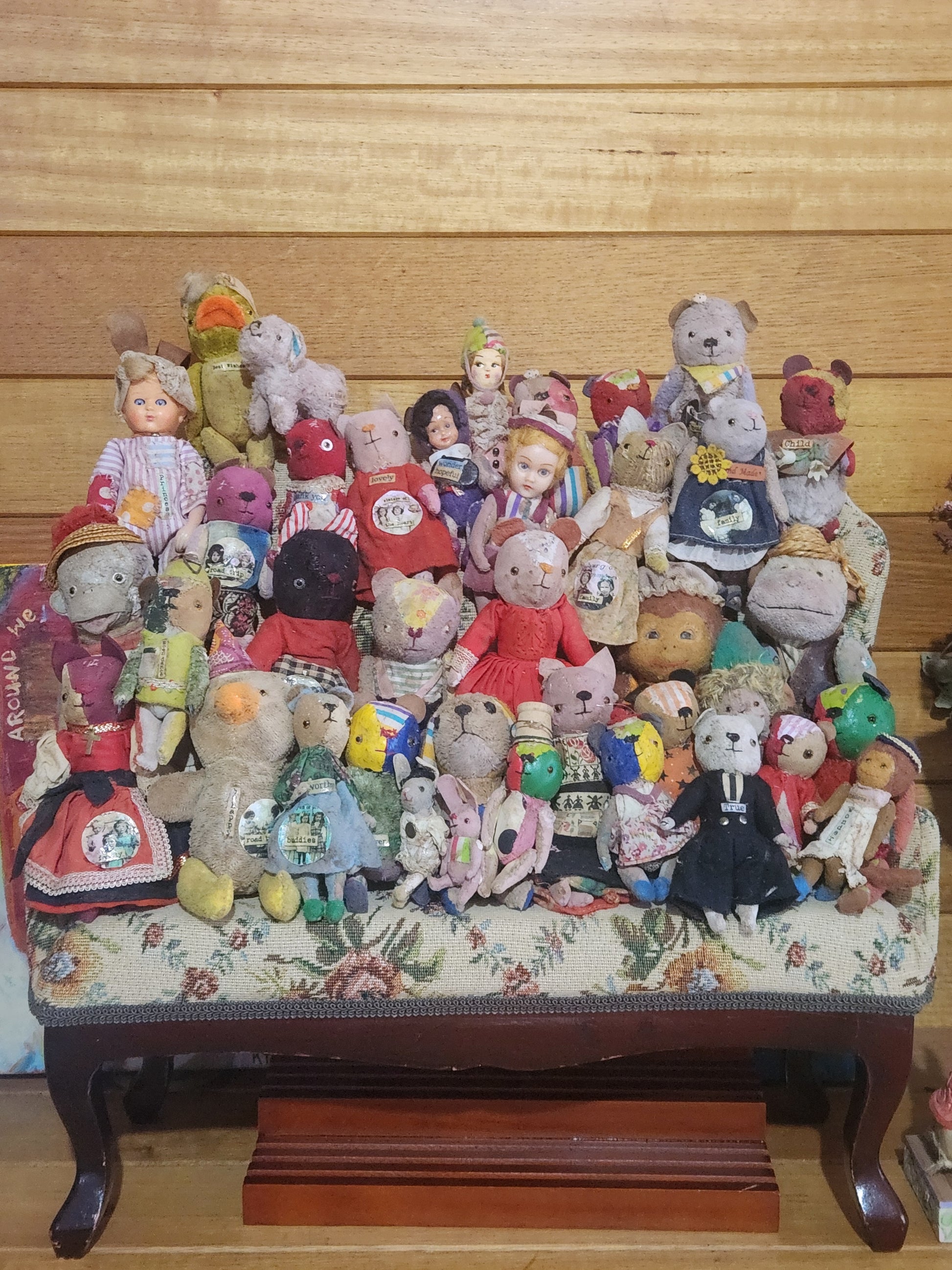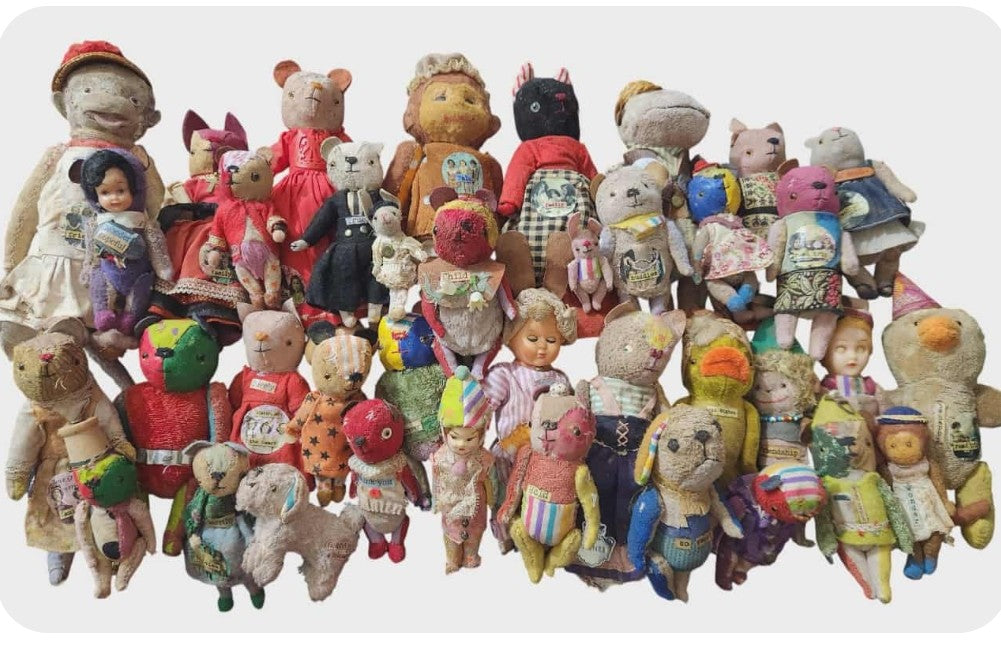 My Raggies are crafted from miniature bear fabrics and upcycled materials, including vintage and antique pieces from broken toys and dolls, as well as repurposed clothing that I carefully modify and incorporate into each creation.