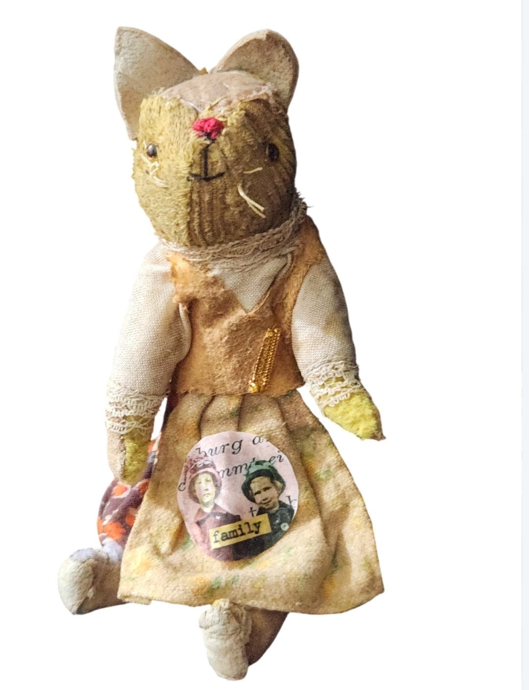 My Raggies are crafted from miniature bear fabrics and upcycled materials, including vintage and antique pieces from broken toys and dolls, as well as repurposed clothing that I carefully modify and incorporate into each creation.