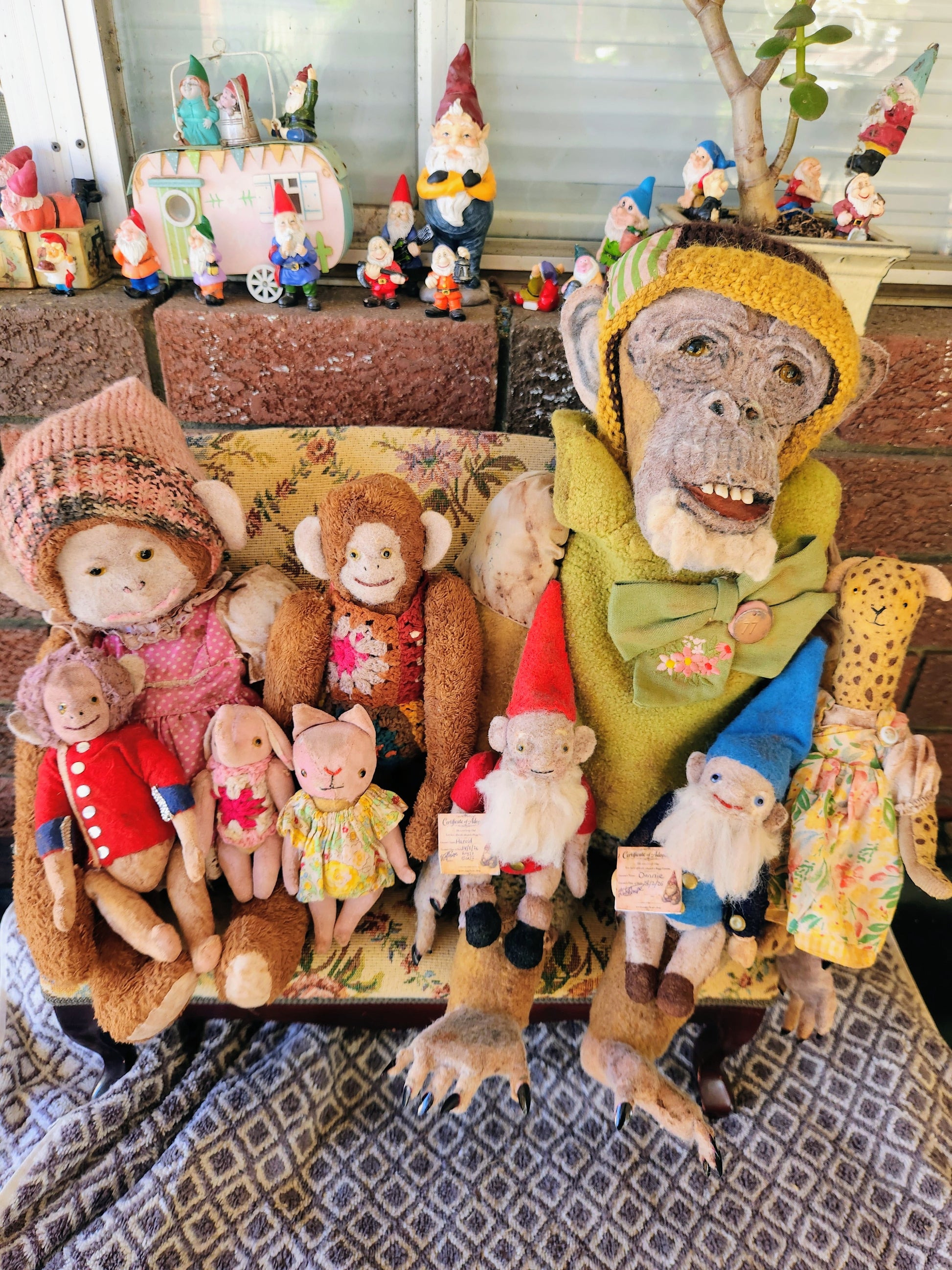 My Raggies are crafted from miniature bear fabrics, vintage fabrics and upcycled materials, sometimes including vintage and antique pieces from broken toys and dolls, as well as clothes made by me and repurposed miniature bear clothes.