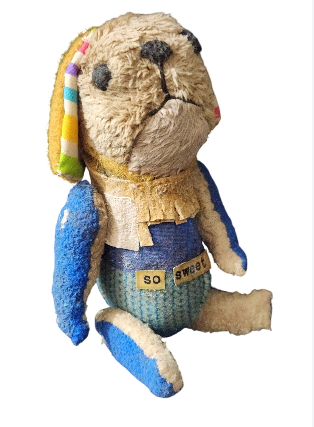 My Raggies are crafted from miniature bear fabrics and upcycled materials, including vintage and antique pieces from broken toys and dolls, as well as repurposed clothing that I carefully modify and incorporate into each creation.
